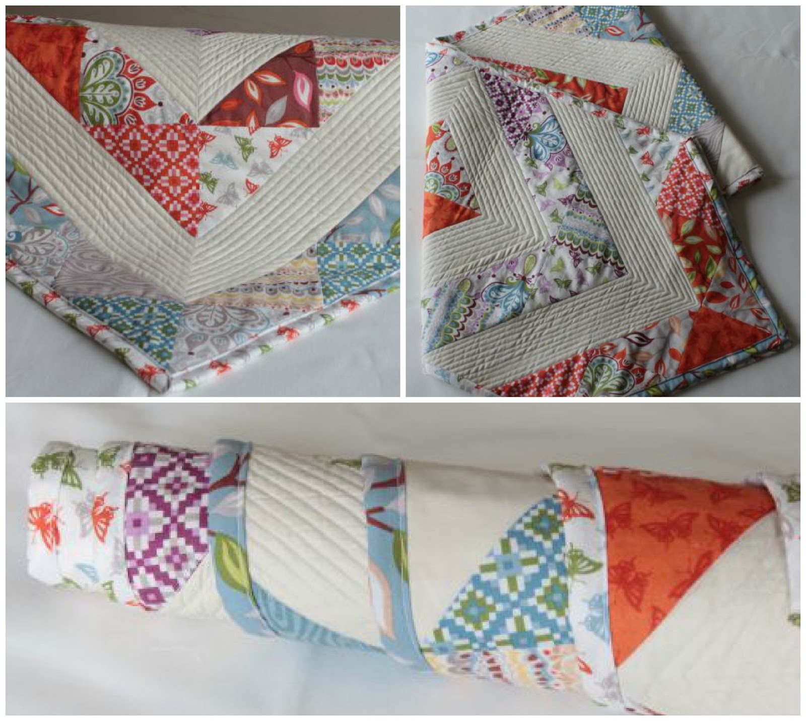 I have never done so much quilting on a table runner. I just did straight lines on the cream solid. It was so a lot of work but it was also lots of fun.