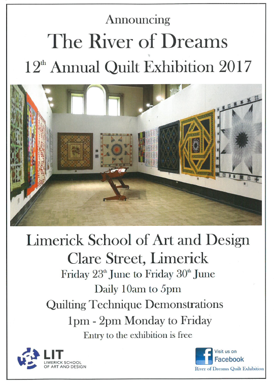 Morning Modern Irish Quilters. Hope it is a sunny Monday where you are. Our exhibition at St Patrick's has been extended for another week and finishes this Friday 30th June if you haven't had a chance to see it there is still time!