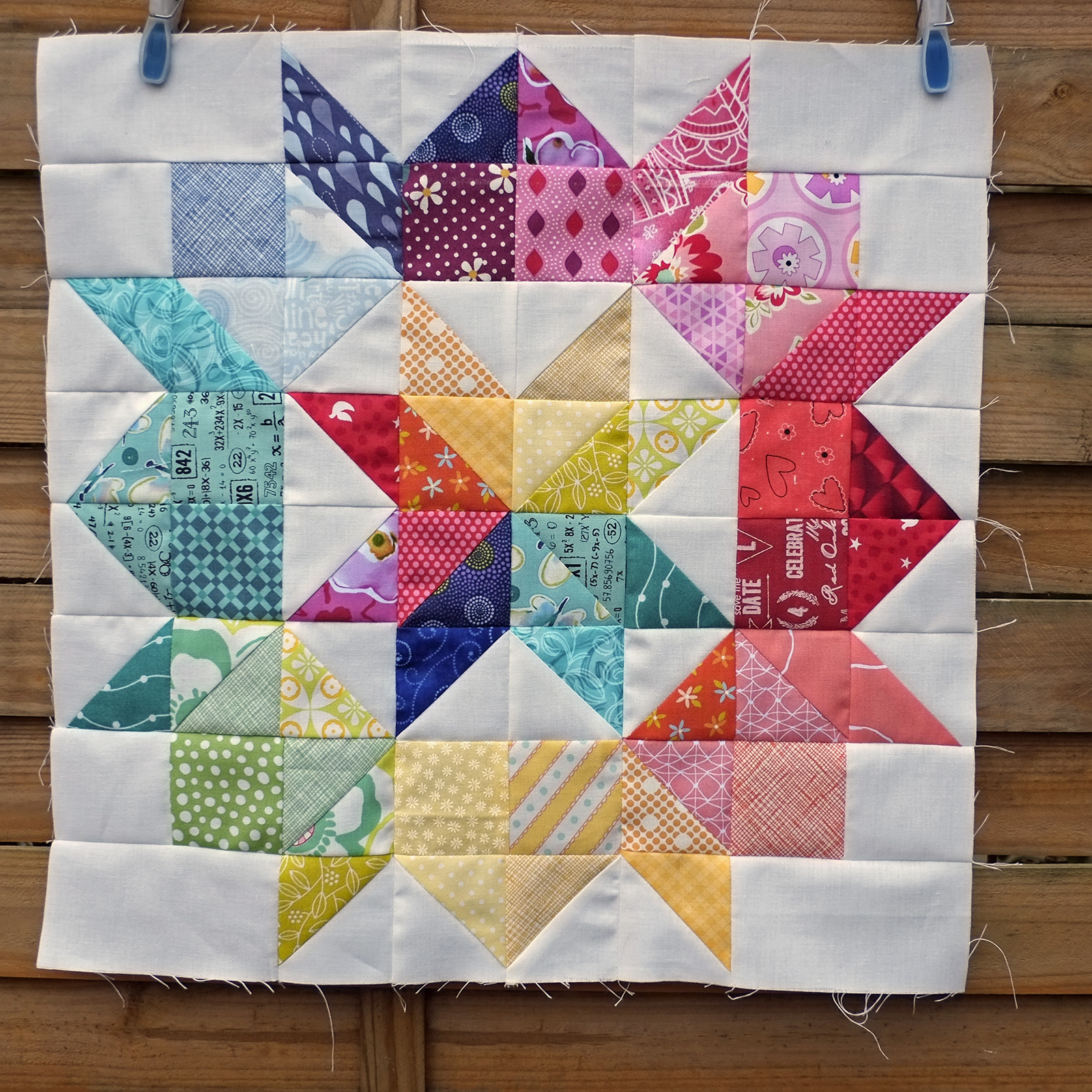 Jo's (Riddle & Whimsy) colourful addition framed and turned on point image courtesy of Wendy's Quilts & More